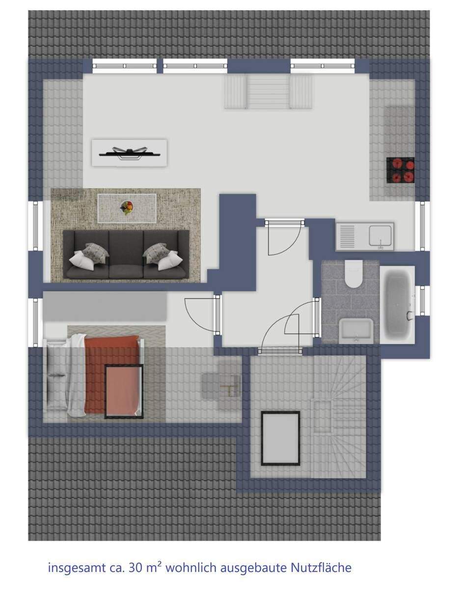 Platz für die gesamte Familie mit 30 m² Zusatzfläche im Dachgeschoss