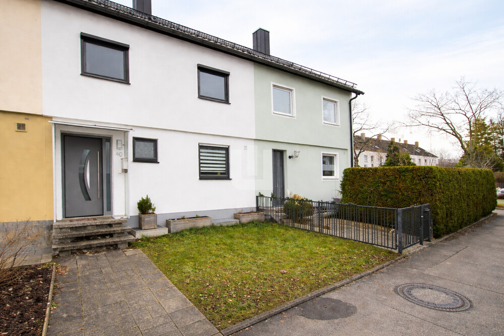 Das Haus wurde 1972 als Mittelhaus eines Mehrspänners in massiver Bauweise errichtet und überzeugt durch seine sonnige Südausrichtung. Der familienfreundliche Grundriss, lichtdurchflutete Räume, ein modernes Badezimmer sowie eine zeitlos weiße Einbauküche schaffen ein angenehmes und einladendes Wohnambiente.
