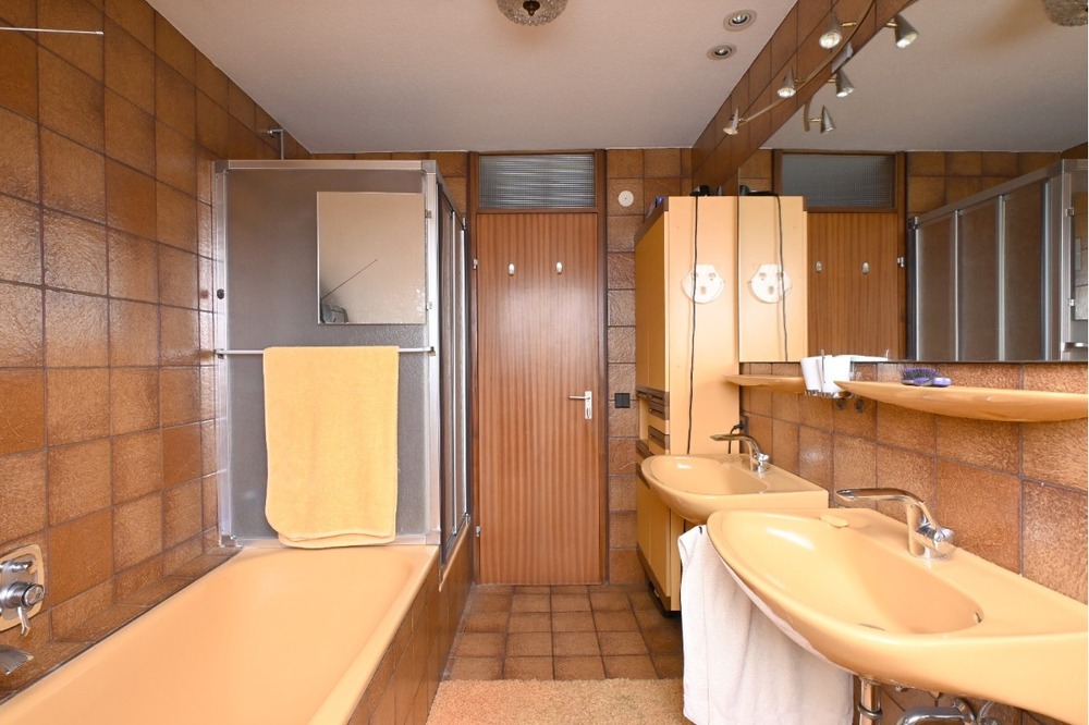 Die Wohnung ist sehr gepflegt, trotzdem wirst du einiges ändern, wenn du hier mit Deiner jungen Familie einziehst. Deiner Phantasie sind hier fast keine Grenzen gesetzt. Die Innenräume überzeugen mit einer angenehmen Raumhöhe und einer durchdachten Aufteilung, die individuelle Einrichtungsideen ermöglicht und jeder seinen Platz finden kann. Zur Ausstattung gehören: Ein Stellplatz im Freien und ein Tiefgaragenplatz. Eine Einbauküche, die du für den Übergang vielleicht noch verwenden kannst. 2 Freiflächen auf Balkon und Dachterrasse mit Markise Tageslicht-Bad und Gäste-WC Eine sehr große Fläche über der gesamten Wohnung ist Lagerfläche zusätzlich zu zwei Kellerräumen. Einen Aufzug gibt es hier nicht.