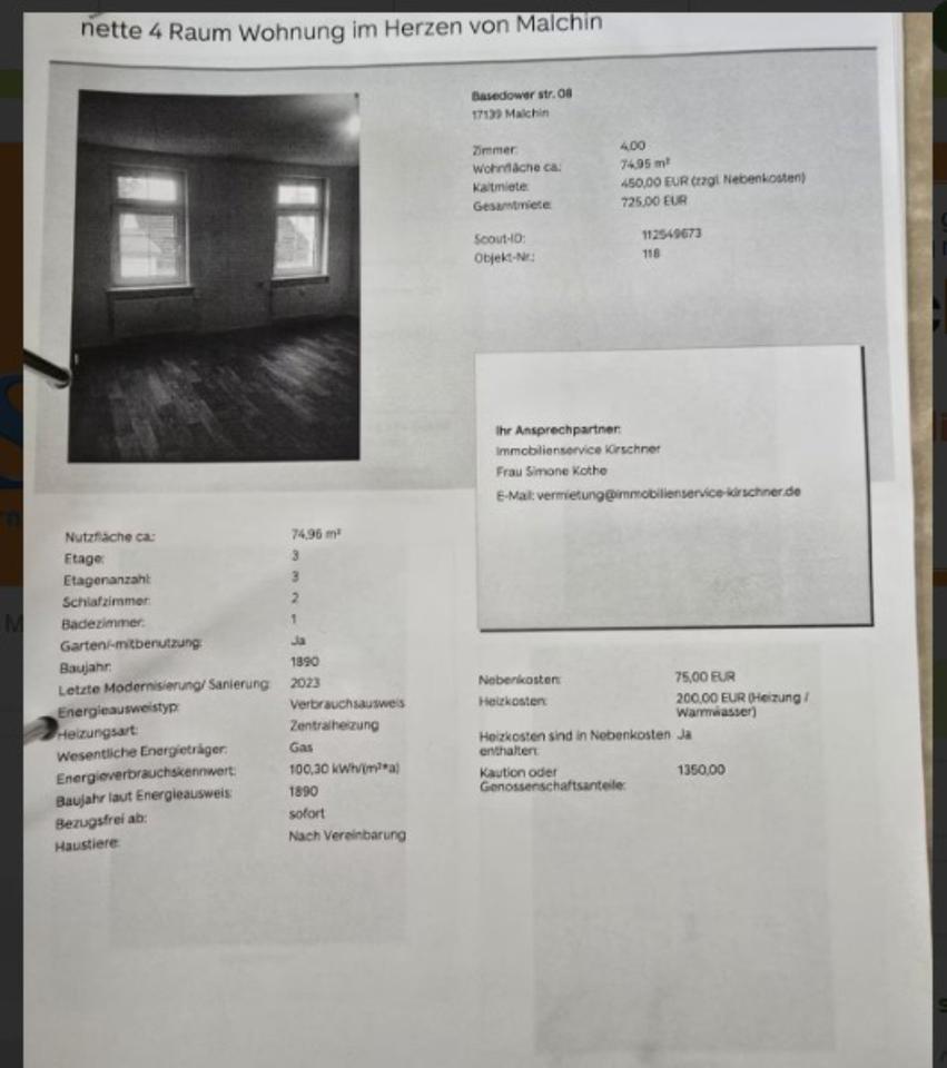 Sie befinden sich hier: 4 Raum Wohnung in Malchin in Malchin - 3299198871-203-74 | 1A-Immobilienmarkt.de