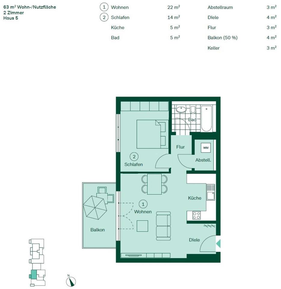 Zimmeranzahl :2 Gesamtgröße :ca. 60,00 m² Stand vom :22.01.2026