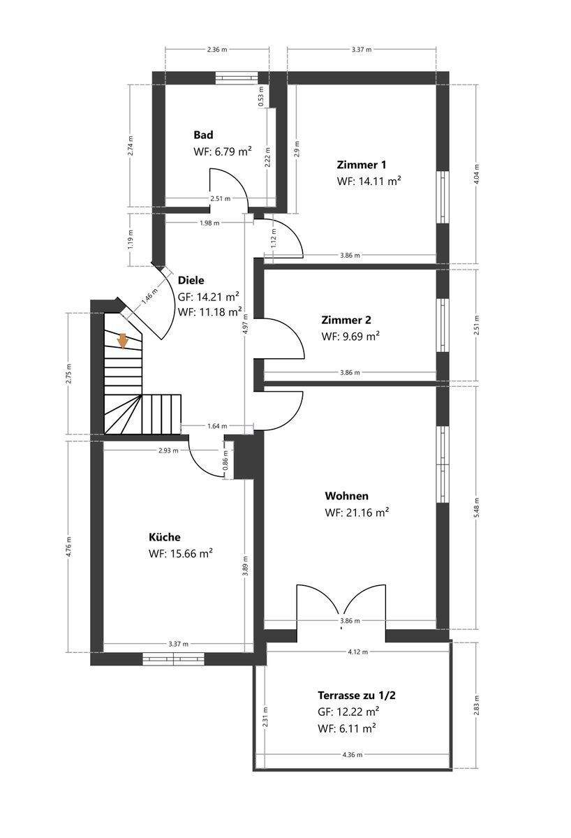 Wohnfläche:ca. 93,00 m²