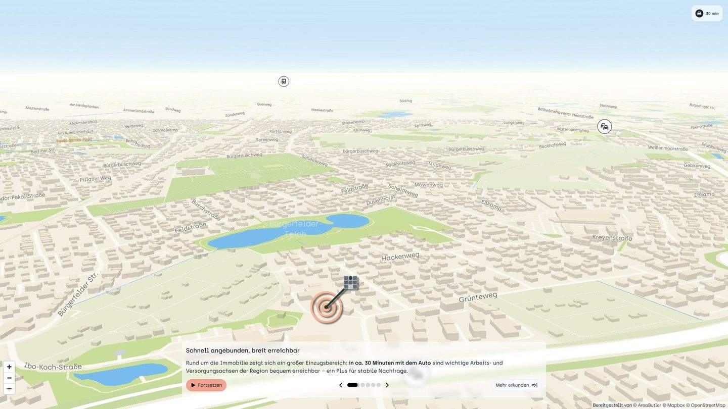 Interaktiver 3D-Lageplan auf HI-Website - 3 Zimmer Etagenwohnung in Oldenburg