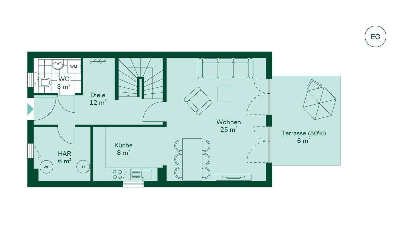 • Geräumiges Erdgeschoss mit offenem Wohn- und Küche -