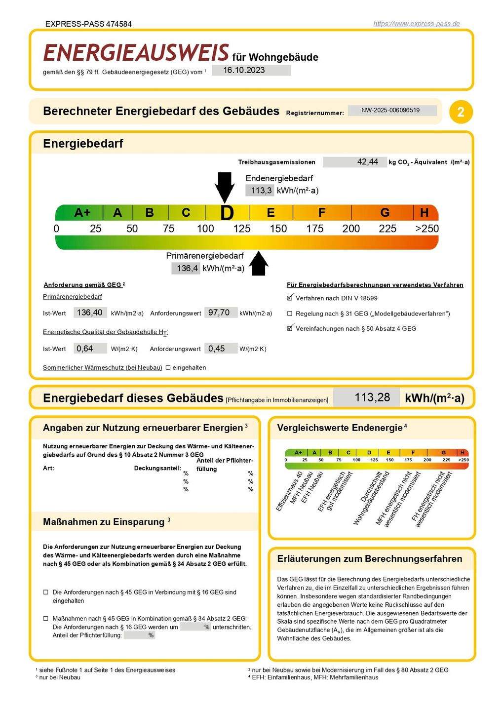 Energieverbrauchkennwert:113,3 kWh/(m²·a) kWh/(m²·a)