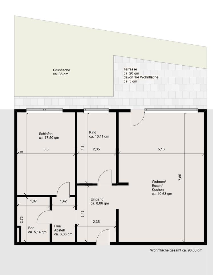 | Gesamtgröße: | ca. 90,00 m² |