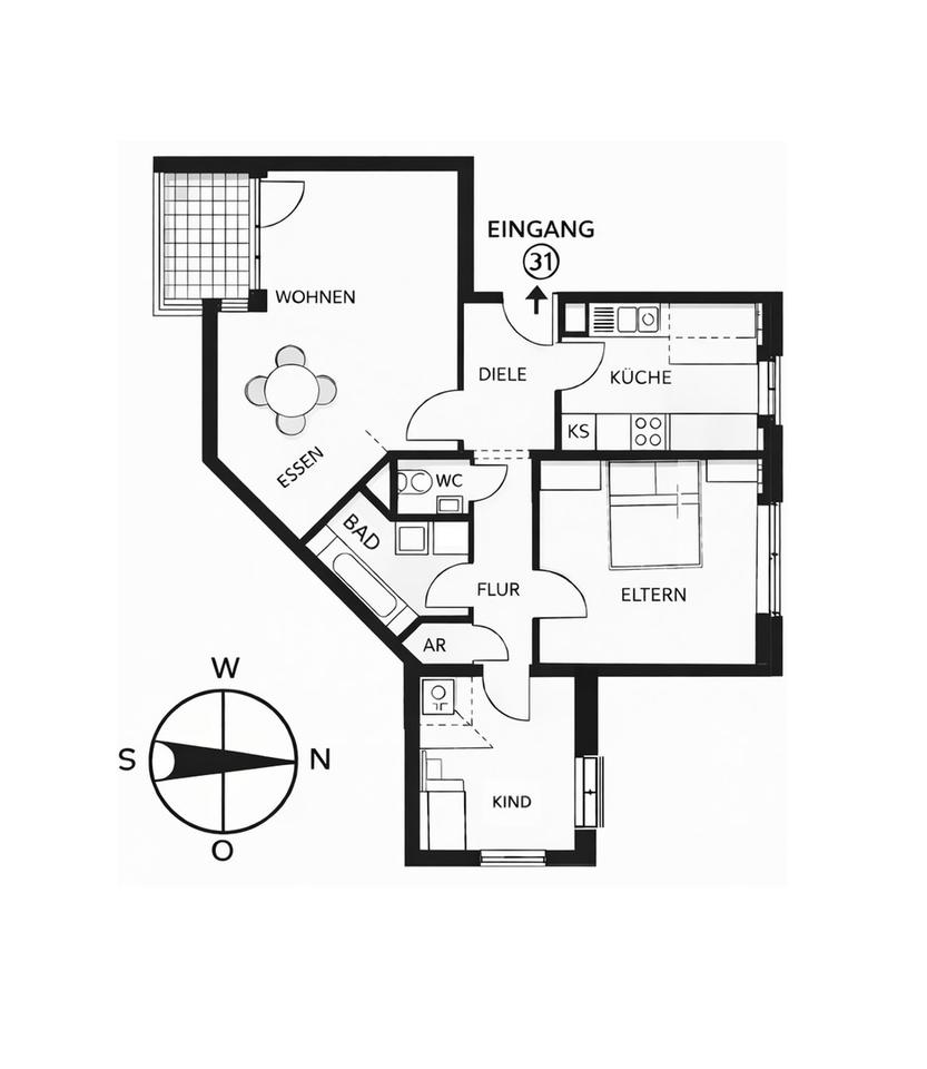 Sie befinden sich hier: Helle 3-Zimmer-Wohnung mit Süd-Balkon und Blick über Walldorf (modernisiert) in Walldorf - 3304184807-203-8260 | 1A-Immobilienmarkt.de