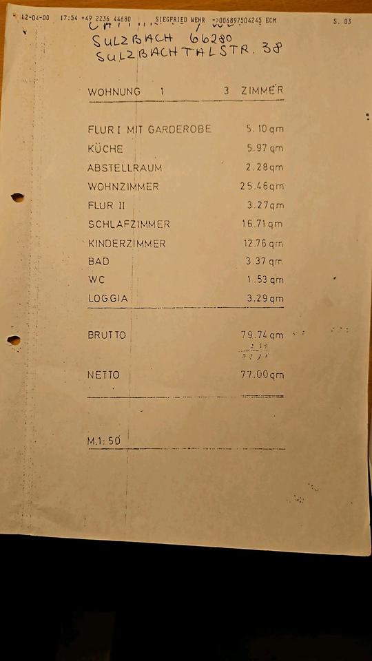 Etagenwohnung in Sulzbach (Saar) 66280