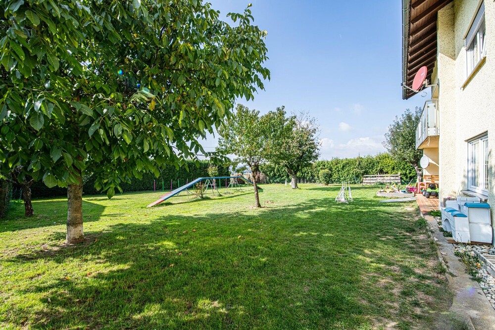 Im Erdgeschoss liegt eine gut geschnittene 3-Zimmer-Wohnung, die Ihnen einen offenen Wohn-, Koch- und Essbereich mit knapp 49 m² bietet. Desweiteren gibt es zwei Schlafzimmer, einen Abstellbereich und ein Bad mit WC. Der Zugang erfolgt über einen eigenen Eingang zum Treppenhaus, der auch direkt zur Einzelgarage führt. Über die nach Süden ausgerichtete überdachte Terrasse führt der Weg direkt in den angrenzenden Garten.