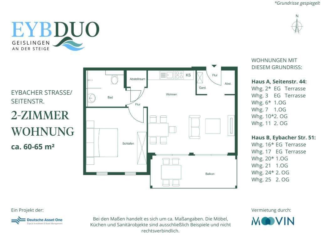 Zimmeranzahl :2 Gesamtgröße :ca. 60,00 m² Wohnfläche :ca. 60,80 m² Baujahr :2023 Frei ab :15.02.2026 Balkon :