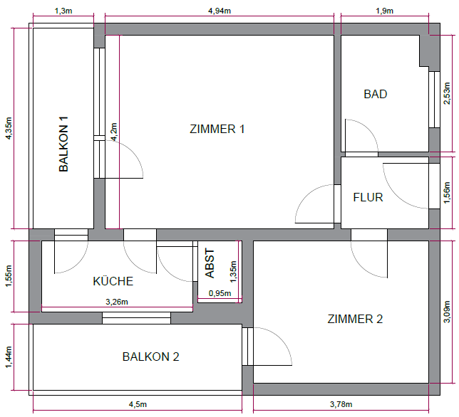 • Grundriss mit Maßangaben -