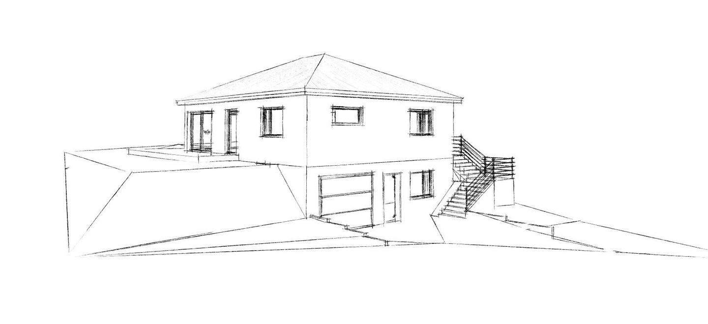• Bleistiftzeichnung Bungalow freie Planung -