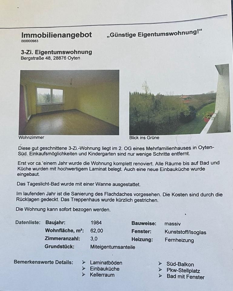 Sie befinden sich hier: Drei Zimmer Wohnung in Oyten - 3304832734-196-2740 | 1A-Immobilienmarkt.de