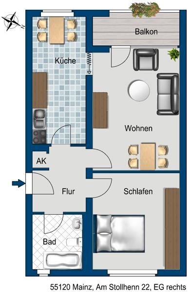 Sie befinden sich hier: Wohnen mit Wohlfühlfaktor – 2-Zimmer-Wohnung mit Balkon in Mainz Mombach - 3305387582-203-5323 | 1A-Immobilienmarkt.de
