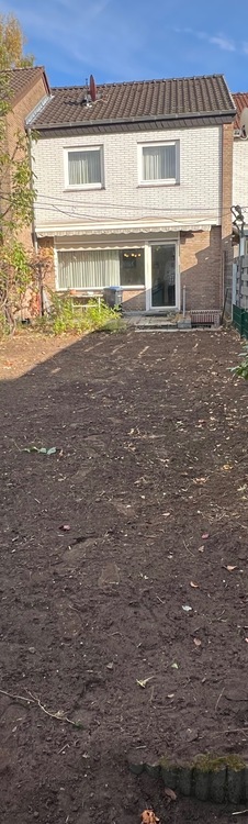 Vom Wohnbereich ist die Terrasse mit Zugang zum Garten zu erreichen. Von einer Aussentreppe im Garten gelangt man zum Keller. Der Gartenbereich wurde soeben gesäubert und begradigt, sodass der neue Eigentümer variabel den Garten gestalten kann. Am Ende des Gartens befindet sich eine zu einem Fußweg gelegenes Tor, sowie ein Gartenschuppen. Eine Garage gehört zum Haus und befindet sich im gegenüberliegendem Garagenhof.