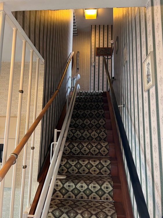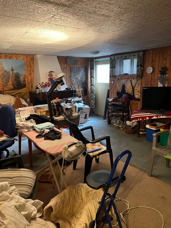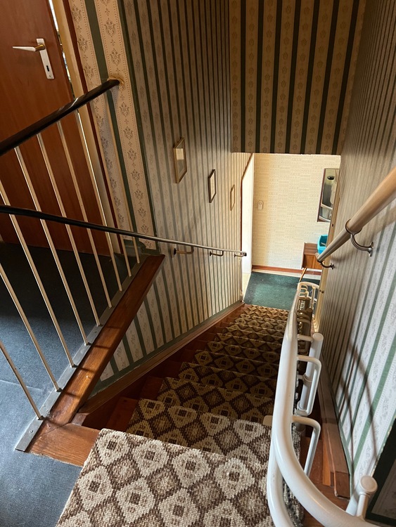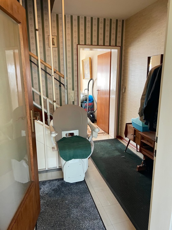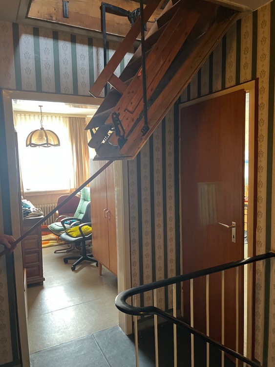 Wände/Böden: Die Wände sind tapeziert und müssten renoviert werden. Risse oder Beschädigungen weisen diese jedoch nicht auf. Die Böden sind überwiegend mit PVC oder mit Fliesen belegt und die Treppe zur ersten Etage ist mit Holzstufen ausgestattet. Der Heizungs- und Vorratskeller verfügen über einen Betonboden mit Anstrich.