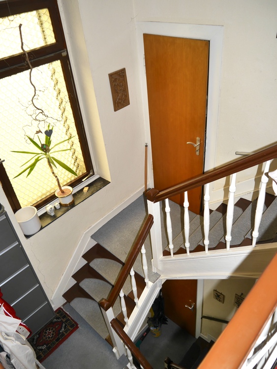 Das Treppengeländer besteht aus gedrechselte Säulen sowie Verstrebungen die erhaltenswert sind und den historischen Hintergrund des Hauses hervorheben. Ein nicht einsehbarer Garten mit altem Baumbestand gehört ebenfalls zur Immobilie. Das Haus ist voll unterkellert mit Zugang zum Gartenbereich. Es handelt sich hierbei um einen Gewölbekeller, der in der Kriegszeit als Luftschutzraum genutzt wurde.