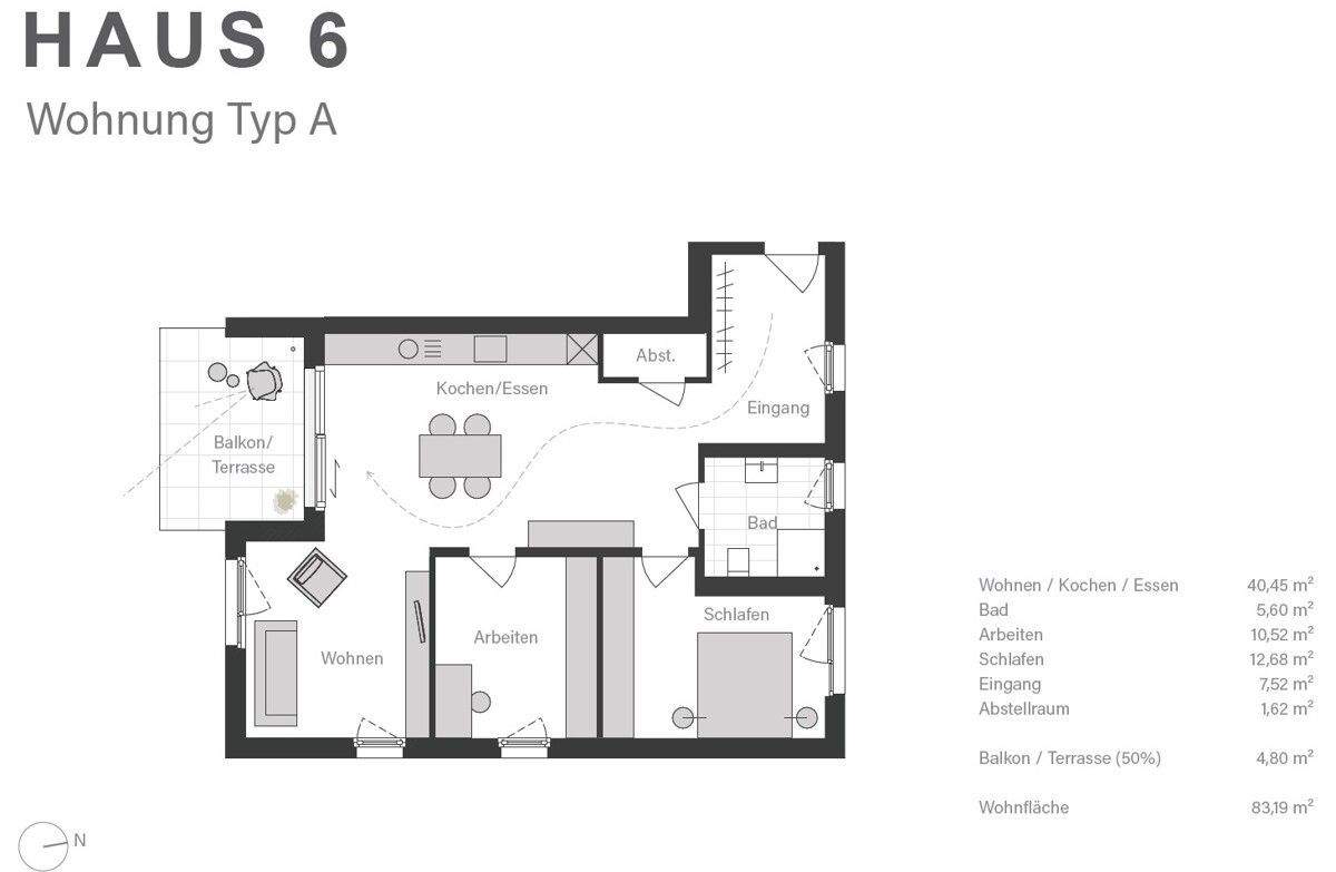Zimmeranzahl :3 Gesamtgröße :ca. 83,00 m² Wohnfläche :ca. 83,20 m² Baujahr :2025 Frei ab :01.02.2026 Etage :1 Balkon :