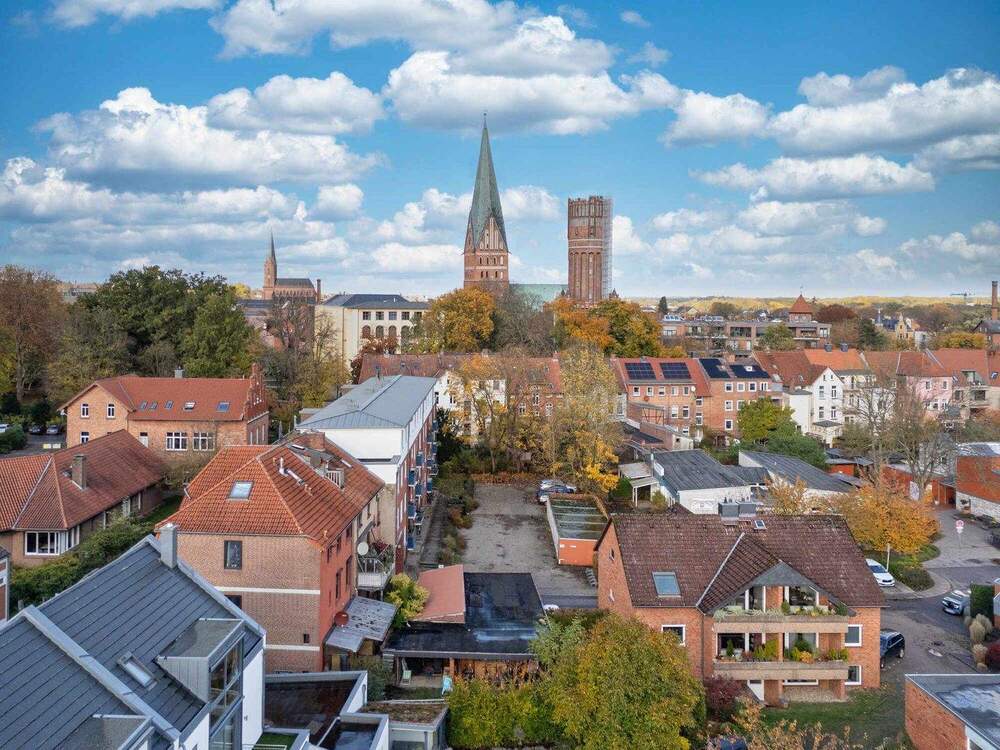 Sie befinden sich hier: Stadthaus mit Innenhofterasse und Blick auf die Johanniskirche und den Wasserturm in Lüneburg Rotes Feld - 25K96N47ZQXH | 1A-Immobilienmarkt.de