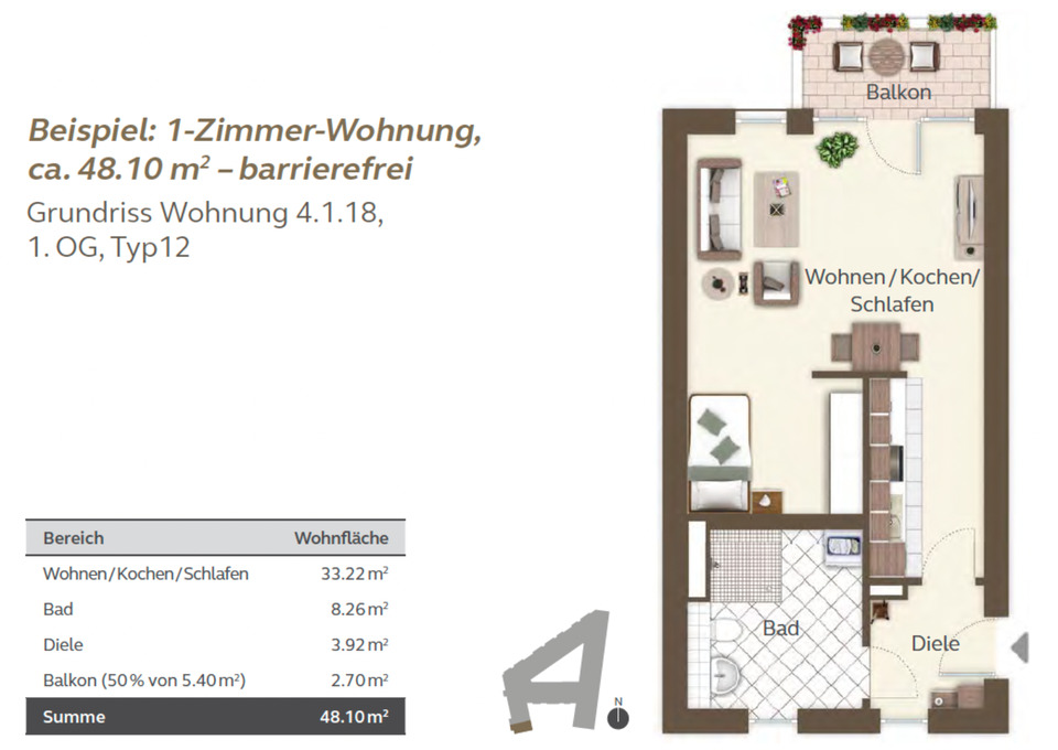 Sie befinden sich hier: Seniorenwohnanlage LAVIDA - schöne 1 Zi. Wohnung mit Küche Balkon in Nürnberg Gibitzenhof - 3306255269-203-6827 | 1A-Immobilienmarkt.de