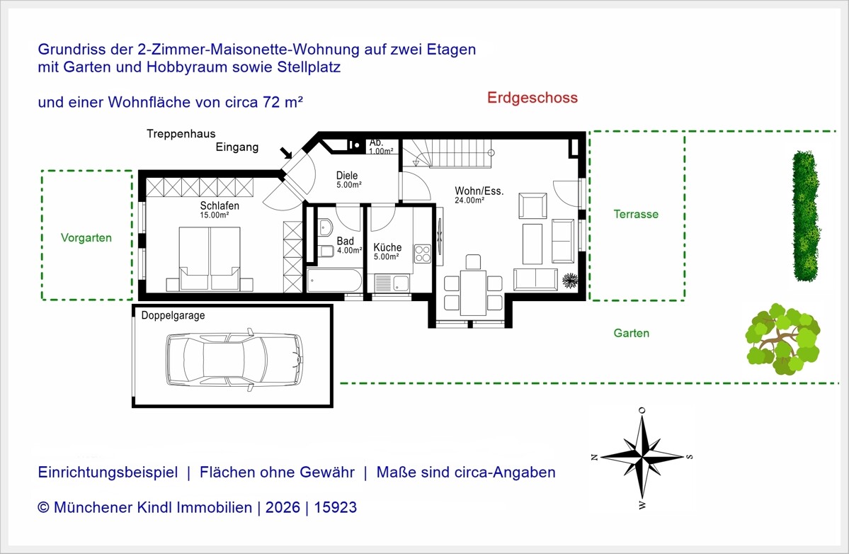 Eine Gewähr für die Richtigkeit sämtlicher im Exposé enthaltener Angaben und Abmessungen wird trotz sorgfältiger Bearbeitung von Daten, Bildern und Informationen nicht übernommen.