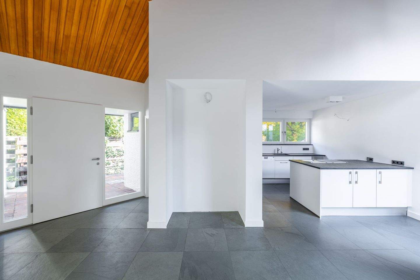 • Die offene Küche mit edlem Küchenblock und Naturst -