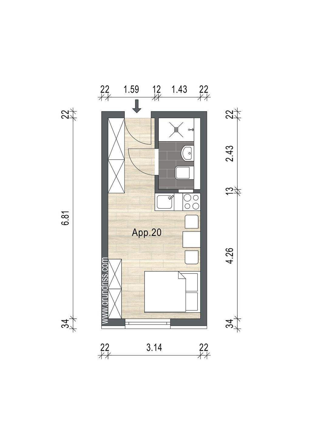 | Wohnfläche: | ca. 21,00 m² |