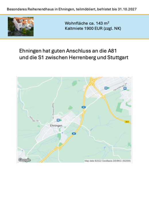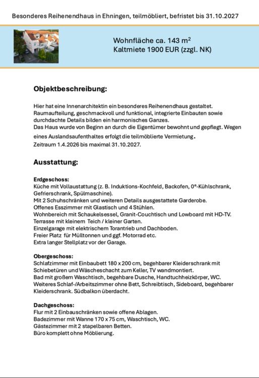Sie befinden sich hier: Teilmöbliertes Reihen-Endhaus in Ehningen, befristet bis 31.10.27 in Ehningen - 3306069195-205-8788 | 1A-Immobilienmarkt.de