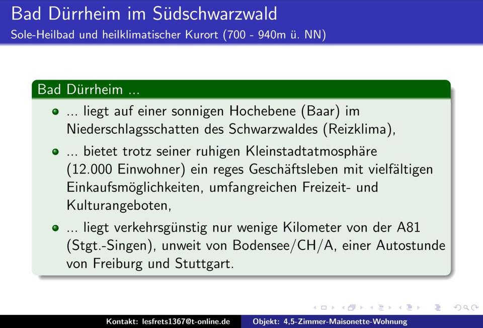 Sie befinden sich hier: Sehr schöne 4,5-Zi.-Maisonette-Whg. (148 m²) in Bad Dürrheim in Bad Dürrheim - 3308936684-196-9101 | 1A-Immobilienmarkt.de