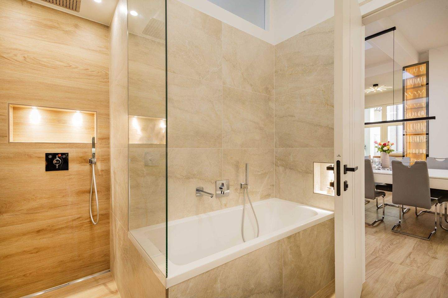 • ...mit Badewanne und bodentiefer Dusche -