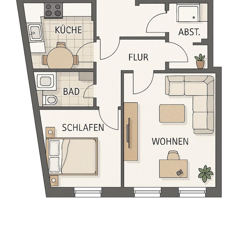 2- Zimmer Whg. EG - 105.000,00 EUR Kaufpreis, ca.  46,80 m²