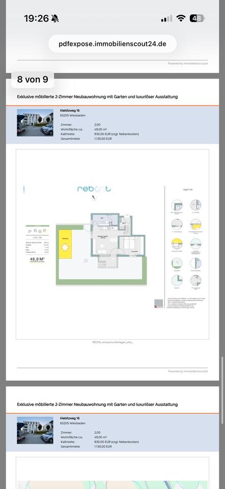 Sie befinden sich hier: Neuwertige 2-Zimmer Wohnungmit Garten ab August 2026 in Wiesbaden Mainz-Amöneburg - 3309999662-203-4913 | 1A-Immobilienmarkt.de