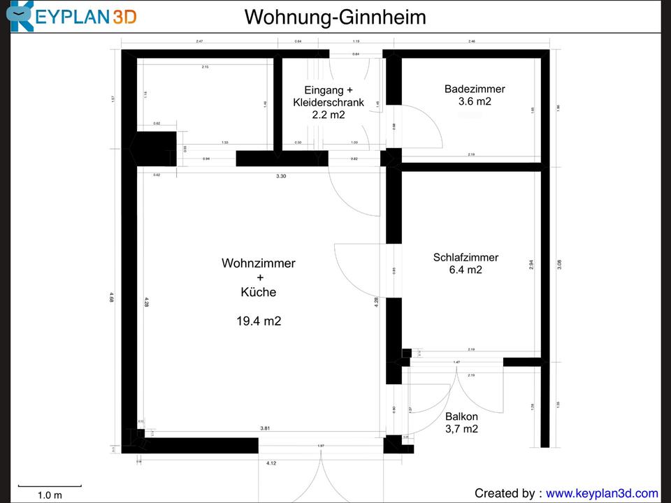 Sie befinden sich hier: 1,5‑Zimmer‑Wohnung (35,30 m²) im 2. OG – verfügbar ab 01.03.2026 in Frankfurt am Main Ginnheim - 3310148953-203-4331 | 1A-Immobilienmarkt.de