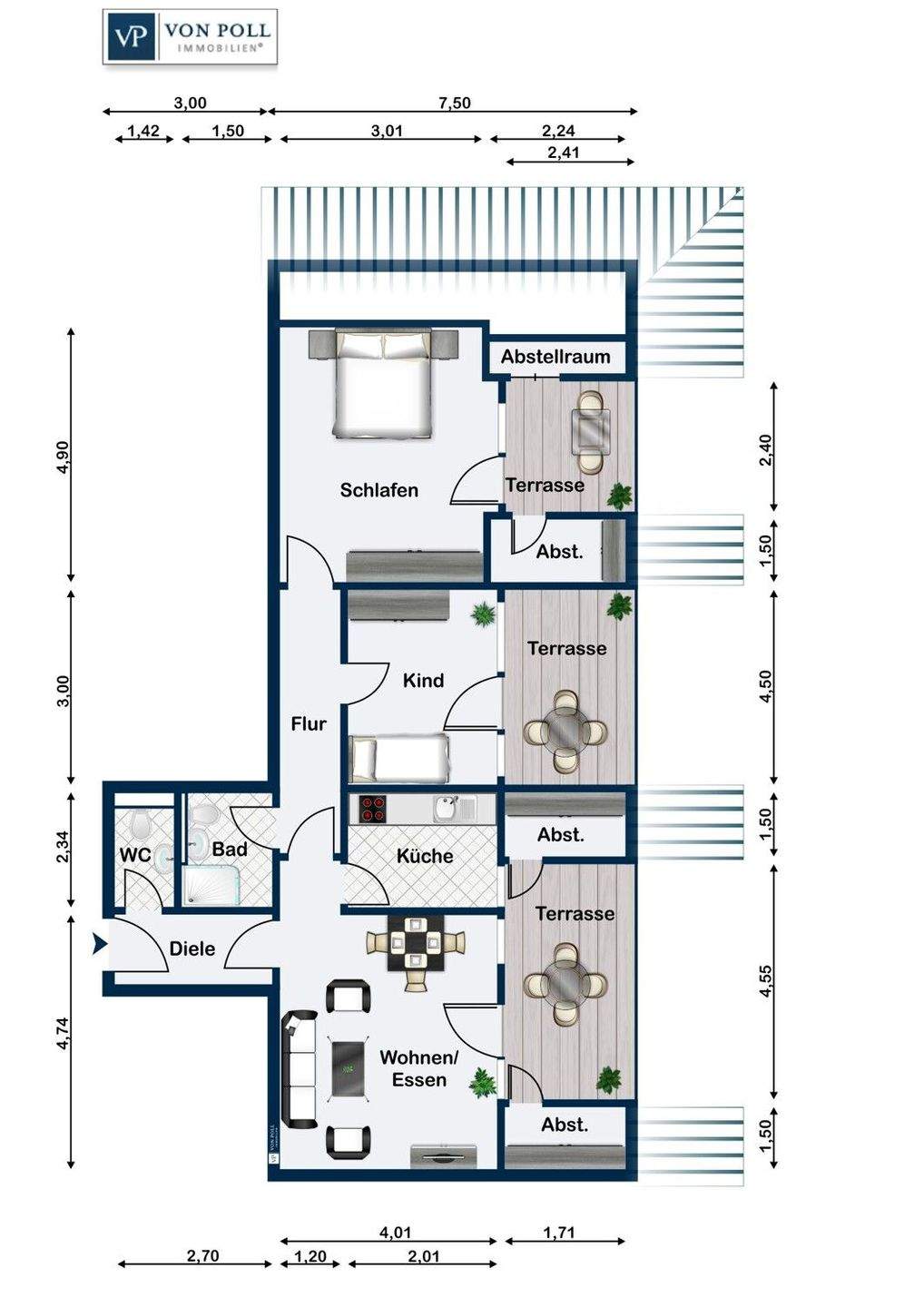 • Dachgeschoss mit drei Terrassen -