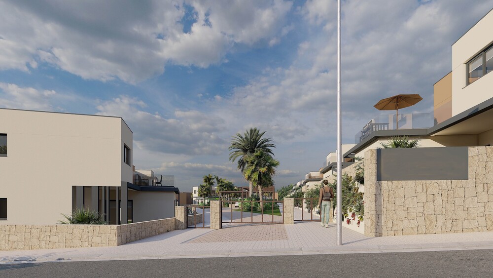 Diese private, geschlossene Wohnanlage verfügt über schöne Gemeinschaftsgärten mit Ruhezonen und einem großen Gemeinschaftspool, Kinderspielplatz, Sportanlagen und Gemeinschaftsparkplätze für die Bewohner. Die Villen erstrecken sich über zwei Ebenen, und die Innenaufteilung besteht aus einem hellen und geräumigen offenen Wohn- und Essbereich mit mehreren großen Fenstern im gesamten Raum, die viel natürliches Licht schaffen und Zugang zur Terrasse und zum Garten bieten, eine voll ausgestattete moderne amerikanische Küche, im Erdgeschoss gibt es auch ein Schlafzimmer mit Doppelbett und ein Gäste-WC. Die Innentreppe führt Sie in den ersten Stock mit dem beeindruckenden Hauptschlafzimmer mit eigenem Bad und begehbarem Kleiderschrank / Ankleidebereich, es gibt auch ein weiteres Schlafzimmer mit Doppelbett und ein separates Gästebad. Die erste Etage verfügt über eine große Sonnenterrasse von 23m2 mit Zugang von beiden Schlafzimmern und dem Korridor. Es gibt auch eine zusätzliche Etage, die es ermöglicht, eine Dachterrasse auf dem Grundstück zu errichten. Der Außenbereich im Erdgeschoss ermöglicht es Ihnen, das Beste aus dem Leben im Freien zu machen, mit einer Terrasse, einem Bereich mit einer schönen Pergola und einem privaten Garten, wo es die Möglichkeit gibt, Ihren eigenen privaten Swimmingpool und Jacuzzi hinzuzufügen.