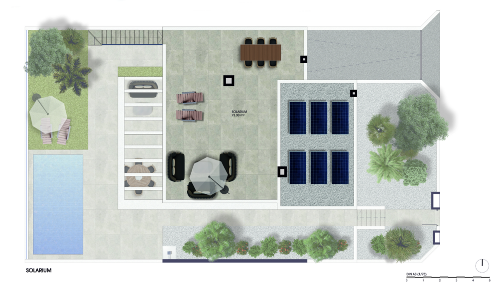 Die Villa verfügt über einen großen Außenbereich, um das Leben im Freien in Spanien zu genießen, eine große Terrasse, die teilweise mit einer Pergola überdacht ist, einen privaten Garten mit einem glitzernden Swimmingpool, der der perfekte Ort ist, um sich an warmen Sommertagen abzukühlen. An der Seite des Anwesens befindet sich eine Außentreppe, die auf die 73 m2 große Dachterrasse führt, die zum Entspannen und Genießen der atemberaubenden Aussicht auf den Golfplatz von La Serena und die umliegende Natur einlädt.