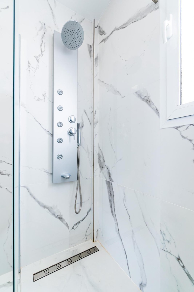 Die Innenaufteilung besteht aus einem Eingangsflur, der zu einem geräumigen, offenen Wohn- und Essbereich mit großen Fenstern führt, die sich zur Terrasse hin öffnen. Im Hauptwohnbereich befindet sich eine moderne Küche im amerikanischen Stil mit vom Boden bis zur Decke reichenden Schränken in Weiß. Im Erdgeschoss befindet sich außerdem ein extra großes Schlafzimmer mit Doppelbett und eigenem Bad und Ankleidebereich sowie ein separates Gäste-WC. Die besondere Innentreppe mit Glas- und Edelstahlgeländer führt Sie in den ersten Stock mit dem beeindruckenden Hauptschlafzimmer mit eigenem Bad und begehbarem Kleiderschrank / Ankleideraum. Es gibt ein weiteres Schlafzimmer mit Doppelbett und eigenem Bad. Alle Schlafzimmer im ersten Stock haben große Fenster, die sich zur Sonnenterrasse hin öffnen. Über die Innentreppe des Hauses gelangt man auch auf die große Dachterrasse, auf der man den ganzen Tag über die Sonne genießen kann. Die Villa verfügt über eine Vorinstallation für eine Klimaanlage, 2 Sonnenkollektoren mit Wechselrichter, einen Dunstabzug in der Küche, Einbauschränke in allen Schlafzimmern, elektrische Rollläden und eine Gegensprechanlage.