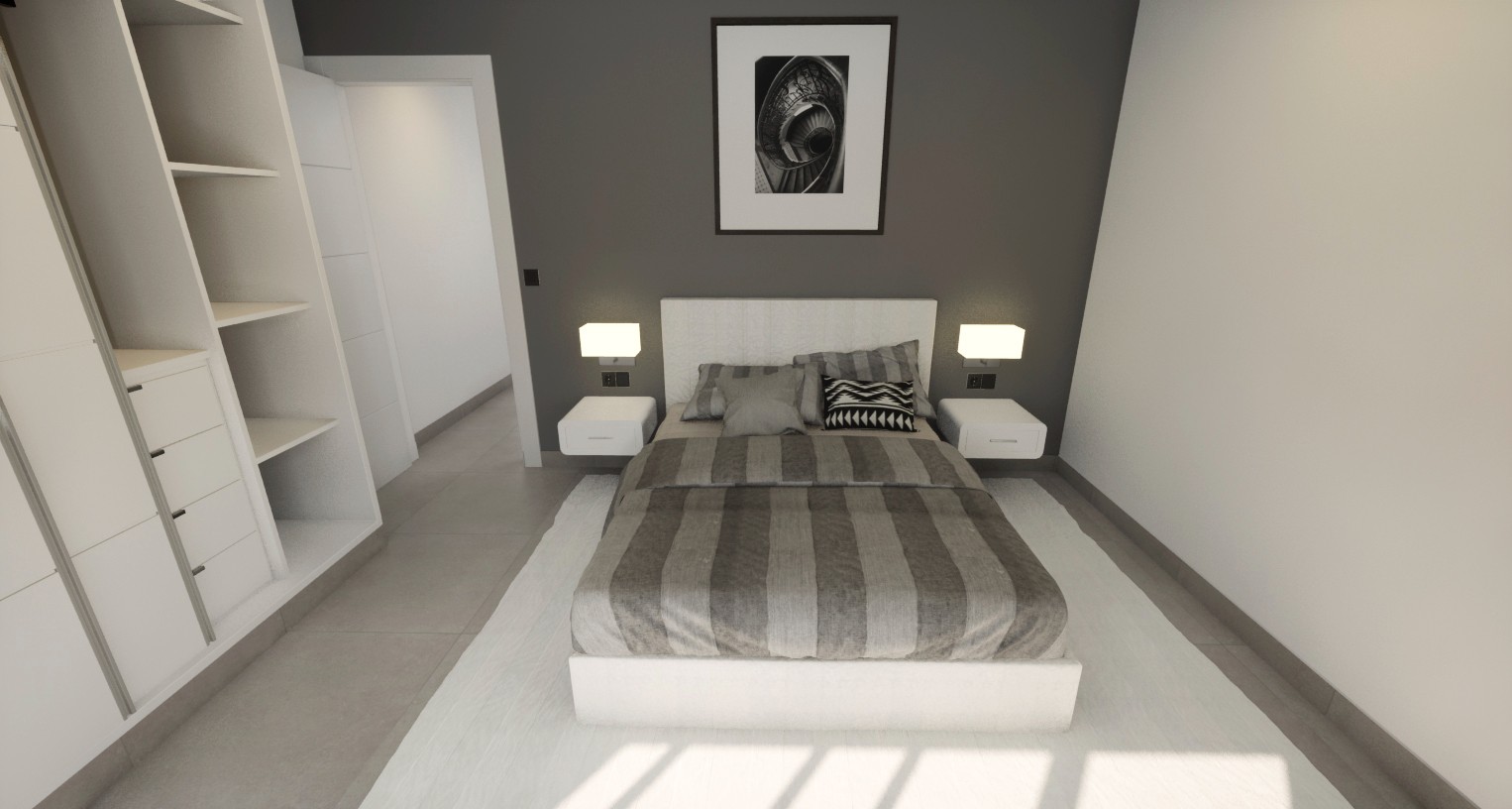 Die Villen wurden in einem modernen Stil und mit einem offenen Konzept entworfen. Dieses besondere Villenmodell befindet sich auf einer Ebene und die Innenaufteilung besteht aus einem hellen und geräumigen Wohn- und Essbereich mit großen Fenstern, die sich zur Terrasse und zum Garten hin öffnen. Im Hauptwohnbereich befindet sich eine voll ausgestattete Küche im amerikanischen Stil mit weißen Schränken und einer schwarzen Granitarbeitsplatte. Das große Hauptschlafzimmer verfügt über ein eigenes Bad und einen geräumigen Kleiderschrank. Es gibt zwei weitere, gut dimensionierte Doppelschlafzimmer, alle Schlafzimmer haben einen Zugang zur Hauptterrasse und es gibt ein separates Gästebad. Eine Außentreppe an der Seite des Anwesens führt Sie auf die große Dachterrasse von 68m2 mit einer Sommerküche, perfekt um im Freien in der Sonne zu speisen.