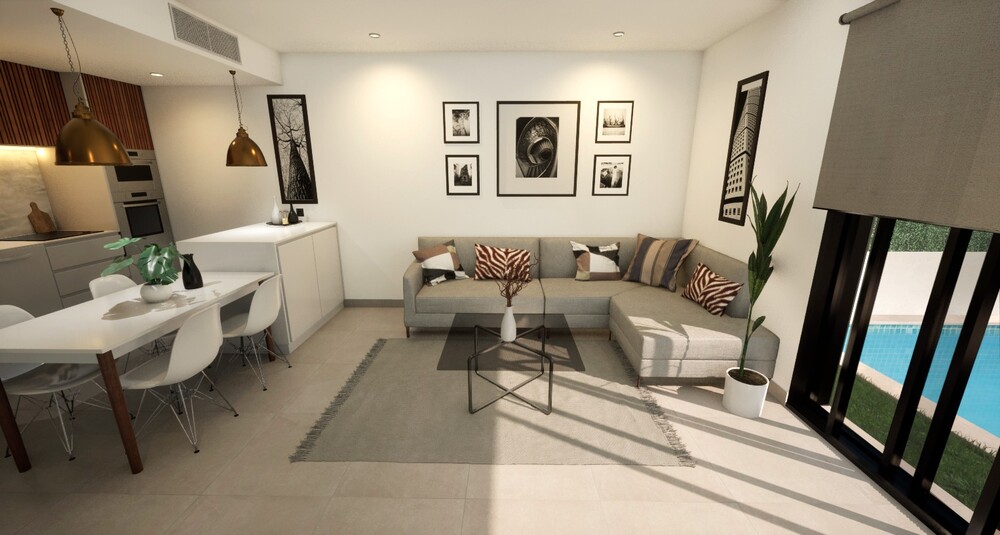 Ein brandneuer Komplex, bestehend aus 9 Villen mit 3 Schlafzimmern, 2 Bädern und privatem Swimmingpool in Los Alcazares (Murcia), perfekt gelegen, nur 5 Minuten zu Fuß zum Strand, umgeben von allen Annehmlichkeiten, Sportanlagen und in der Nähe von mehreren Golfplätzen.