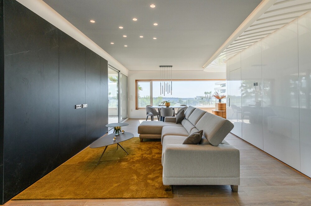 Moderne Erdgeschoss-Wohnung in der exklusiven Madroño Gemeinschaft in Las Colinas Golf & Country Club. Mit 3 Schlafzimmern, 2 Bädern, großzügigen Terrassen und atemberaubendem Golfblick. Privater Landschaftsgarten, Parkplatz in der Tiefgarage sowie ein Abstellraum. Komplettes Smart-Home-System (Domotik) zur Steuerung von Jalousien, Rollläden, Licht und Klimaanlage in der Immobilie. Fußbodenheizung in den Bädern, voll ausgestattete Küche mit allen Elektrogeräten. Offene Raumaufteilung mit Einbauschränken und hochwertiger Verarbeitung. Zur Anlage gehören auch zwei Außenpools, ein Spa/Fitnessraum und ein überdachter, beheizter Swimmingpool.