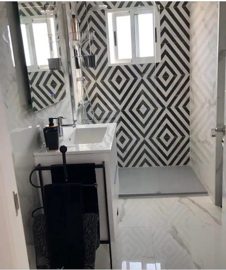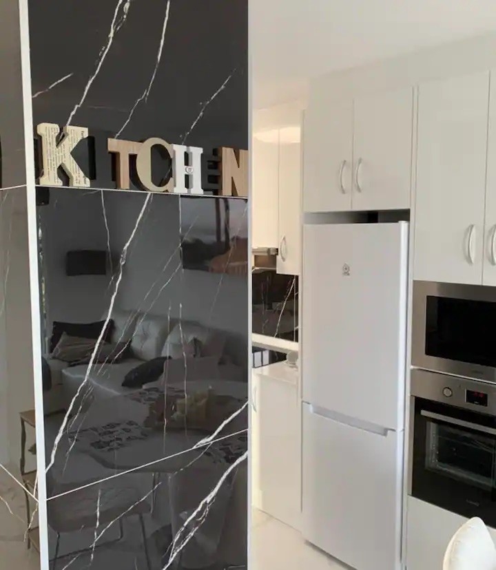 Die Innenausstattung ist offen gestaltet und verfügt über einen geräumigen Wohn- und Essbereich, der eine gemütliche und komfortable Atmosphäre ausstrahlt. Im Hauptwohnbereich befindet sich eine moderne Küche im amerikanischen Stil, die wunderschön in eleganten Schwarz- und Weißtönen gehalten ist. Es gibt zwei geräumige Doppelzimmer, wobei das beeindruckende Hauptschlafzimmer über große Doppelfenster verfügt, die einen atemberaubenden Blick nach draußen bieten. Beide stilvollen Badezimmer sind ebenfalls in den zeitgemäßen Schwarz- und Weißtönen gehalten und verfügen über Fenster, die für ein Maximum an natürlichem Licht sorgen. Die Immobilie verfügt über eine großzügige Terrasse mit Meerblick und einen privaten Dachsolarium, der den Außenbereich noch weiter vergrößert. Das Apartment verfügt außerdem über einen Parkplatz in einem umzäunten Bereich, was den Eigentümern zusätzlichen Komfort bietet.