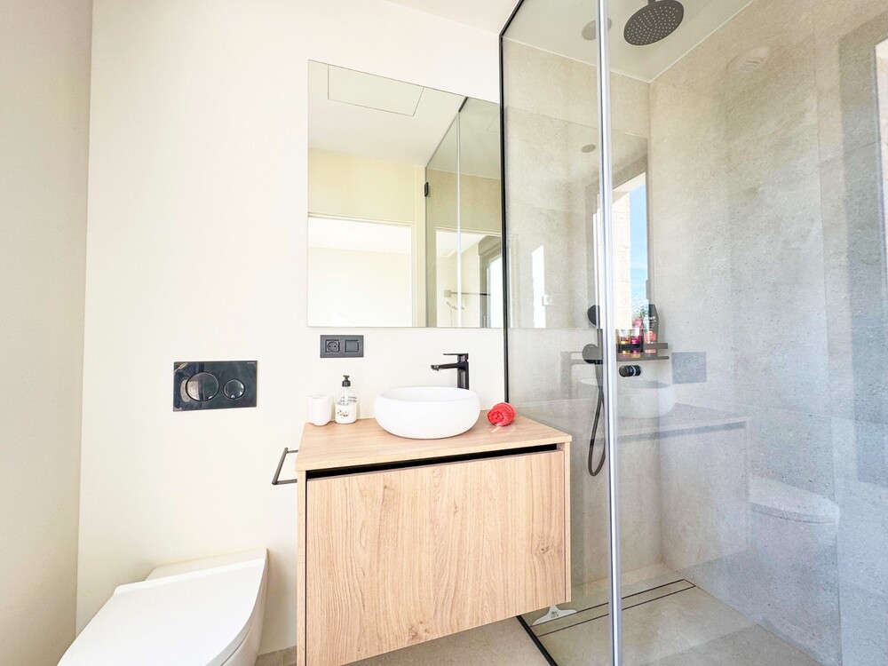 Modernes Apartment im 1. Stock der Wohnanlage Kumquat im Las Colinas Golf & Country Club. Mit 2 Schlafzimmern, 2 Bädern, großer Terrasse und freiem Blick auf die umliegenden Wälder und Grünflächen. Dieses voll möblierte Anwesen bietet hochwertige Haushaltsgeräte in der Küche, Klimaanlage (warm/kalt) sowie elektrische Fußbodenheizung in den Bädern, elektrische Rollläden in allen Räumen. Tiefgaragenstellplatz und Abstellraum sowie Zugang zum Gemeinschaftspool. Einfacher Zugang per Aufzug zum Pool, zur Garage, zum Grundstück und zum Haupteingang. Sie können das Clubhaus (Golfplatz) und alle lokalen Dienstleistungen bequem zu Fuß in etwa 15 Minuten oder mit dem Auto in 2 Minuten erreichen. Die Strände von Campoamor „La Glea“, wo Sie den privaten Strandclub „Wow Beach“ von Las Colinas finden, sind ebenfalls nur 15 Autominuten entfernt, ebenso wie viele weitere weiße Sandstrände und natürlich Einkaufszentren, Restaurants/Bars, Supermärkte und Unterhaltungsmöglichkeiten.