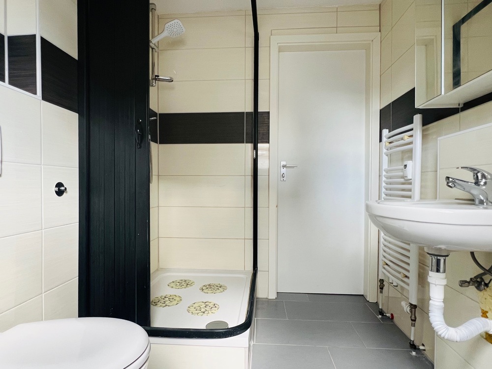Wohneinheit 1 – EG rechts (Altbau) • Wohnfläche: ca. 47 m² • Zimmeranzahl: 2 • Kernsanierung: 2024 • Einbauküche: 2024 • Tageslichtbad mit Lüftung: 2024 • Bodenbeläge: Fliesen, erneuert 2024 • Fenster: 2-fach verglaste Holzrahmenfenster, mit Jalousien • Heizkörper und -leitungen: erneuert 2024 • Wasserleitungen: erneuert 2024 • Stauraum: ehemalige Schuppen • Terrasse • Kaltmiete: 700 EUR / Monat