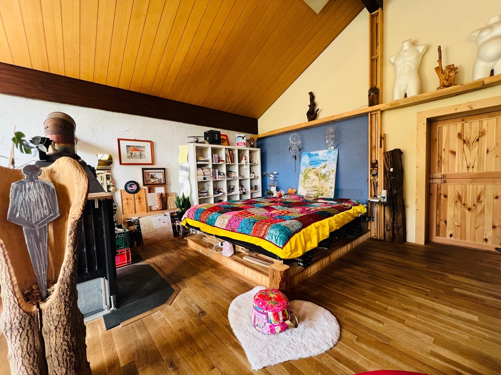 Eingebettet in ein großzügiges Grundstück in absoluter Alleinlage, direkt am Waldrand, bietet es seinen Bewohnern etwas, das heute selten geworden ist: Stille. Raum. Freiheit. Natur. Harmonie. Und eine Atmosphäre, die berührt. Ob als kreatives Refugium, spiritueller Rückzugsort oder einfach als Zuhause mit ganz besonderer Ausstrahlung: Dieses Haus spricht Menschen an, die das Unkonventionelle und das Authentische lieben.