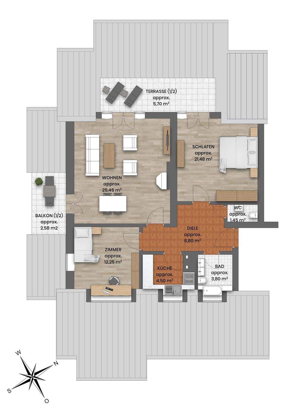 Sie befinden sich hier: Gemütliche 3-Zimmer-Wohnung mit Kaminofen, Dachterrasse und Balkon in München Trudering-Riem - 26HCAZ59938Q | 1A-Immobilienmarkt.de