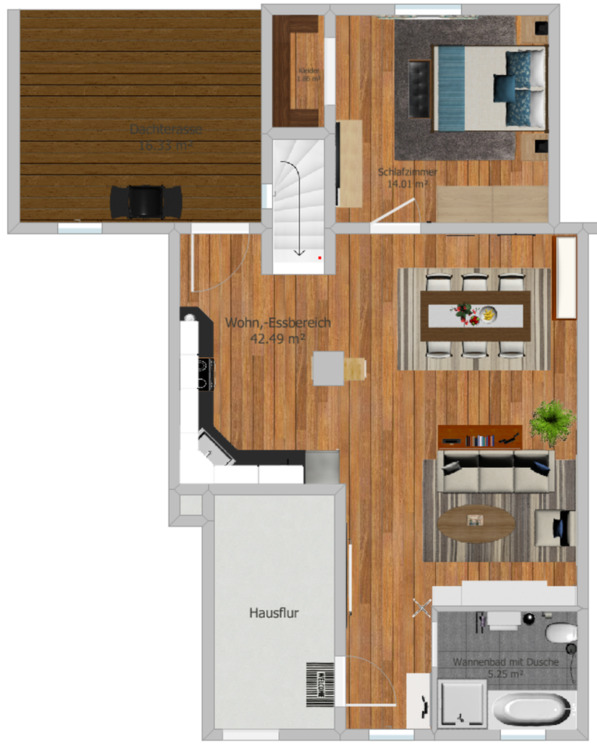 Genehmigte Wohnung mit Dachterrasse – Wohnen auf zwei Ebenen