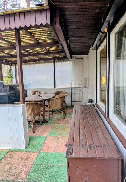 Vorderansicht Terrasse - Wochenendgrundstück am Rande Berlins 50 m zum See