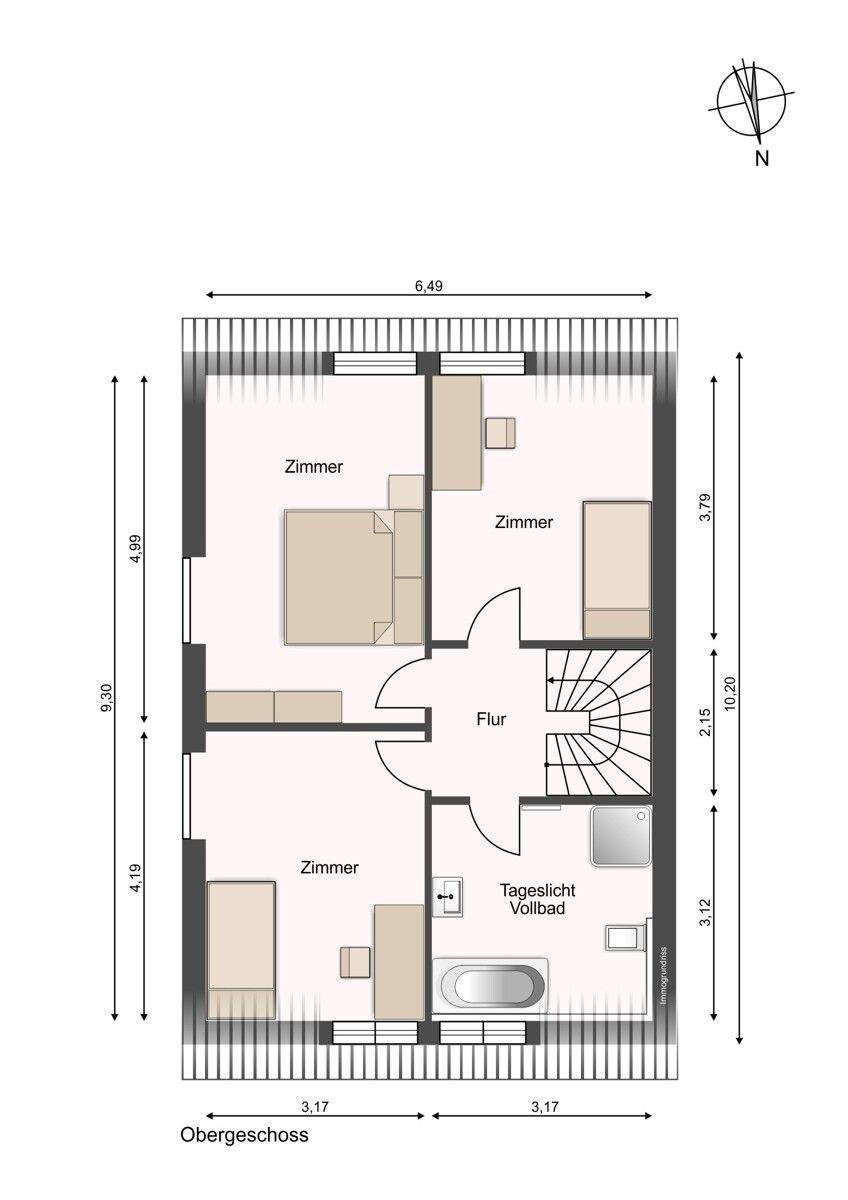 • Spitzboden – Beispielabbildung einer Referenzimmobilie des Bauträgers -