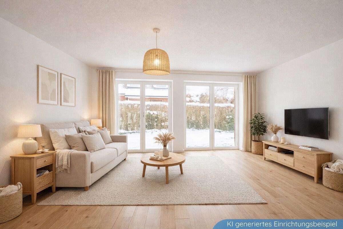 • Wohnbereich mit offener Küche - Beispielabbildung einer Referenzimmobilie des Bauträgers -