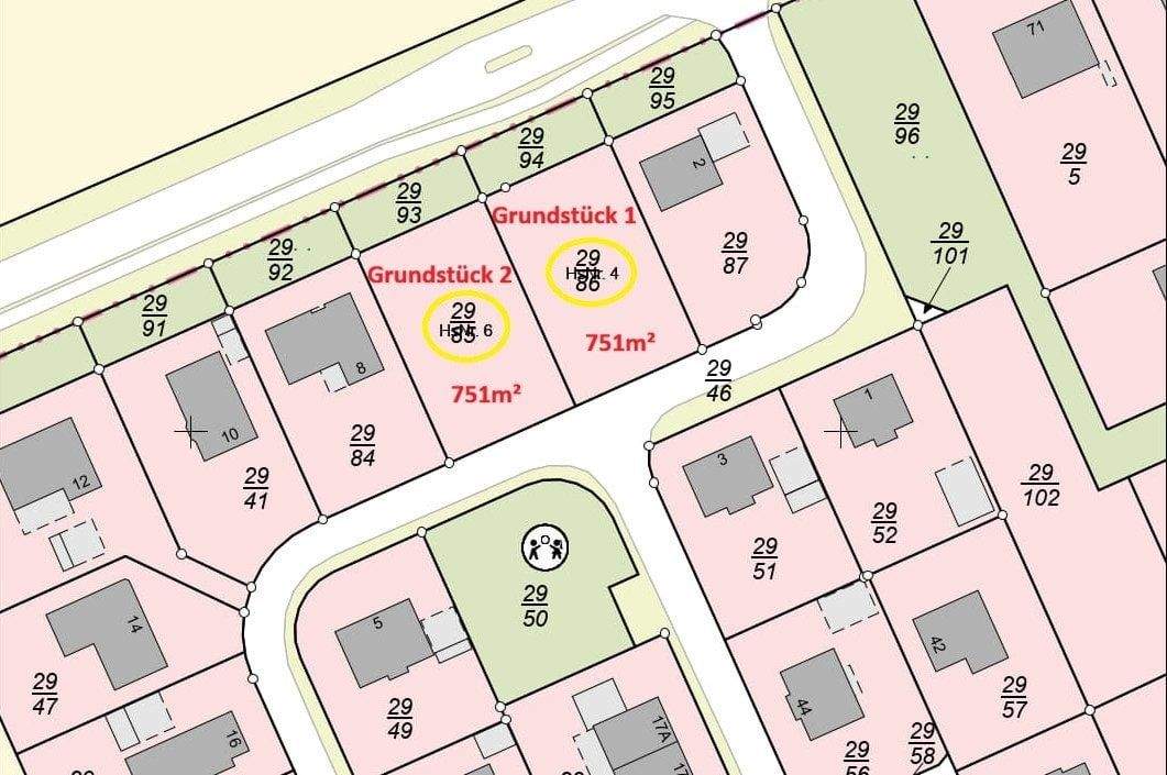 • Lageplan Baugrundstück 1 und 2 -